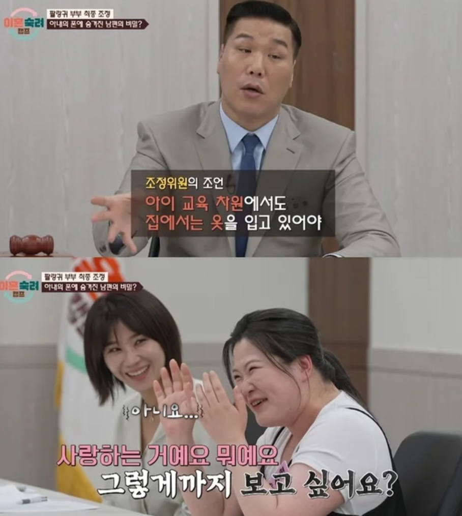 "아니, 남편이 자꾸 집에서 옷을 벗고 다니니까 문제 아니냐!"고 따지더라구